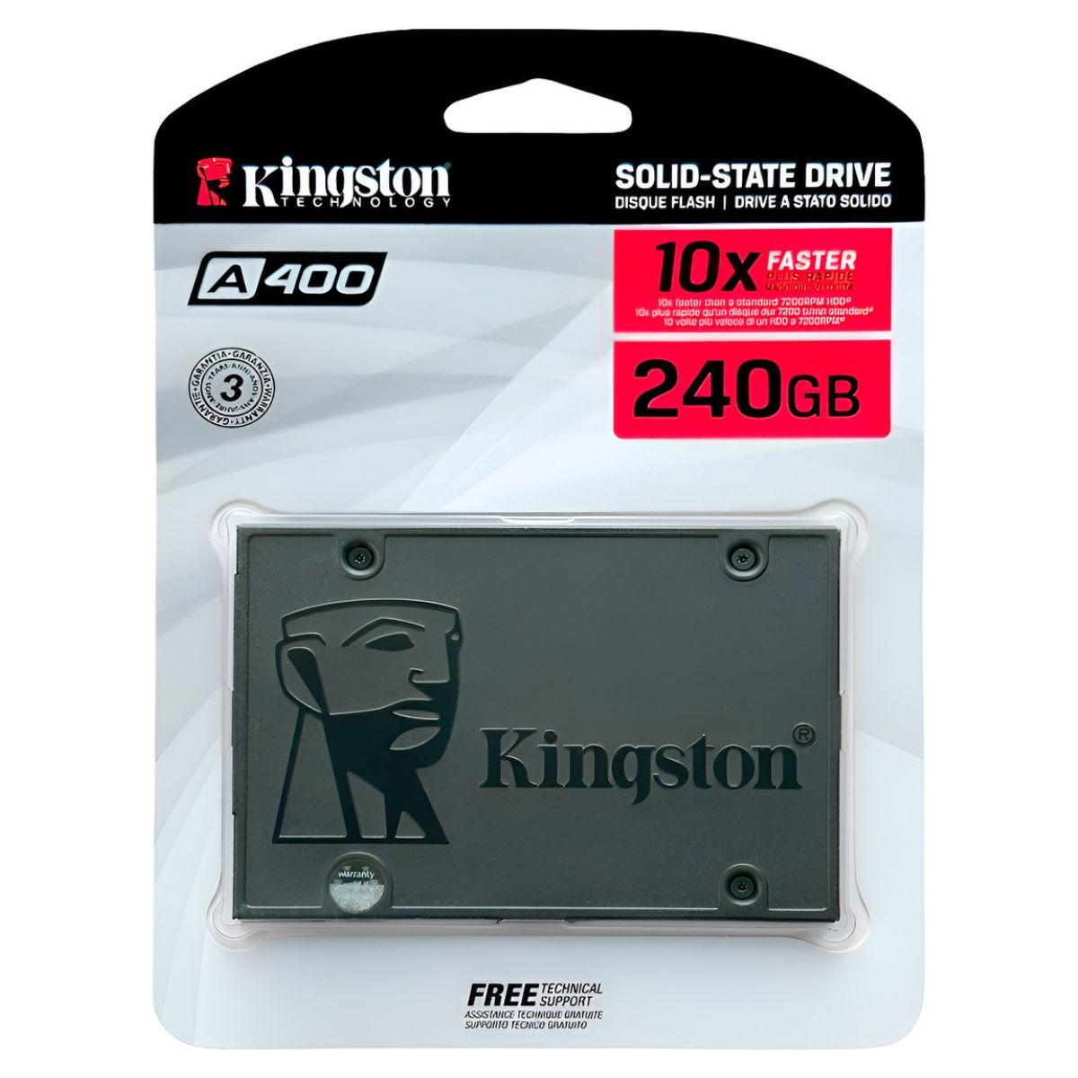 O SSD Kingston A400 240GB acelera a inicialização do sistema, reduz tempos de carregamento de aplicativos e jogos e torna o dia a dia no PC ou notebook mais ágil e responsivo. Por não ter partes móveis, ele é mais resistente a impactos e vibrações, opera de forma silenciosa, consome menos energia e ajuda a prolongar a bateria de notebooks.
